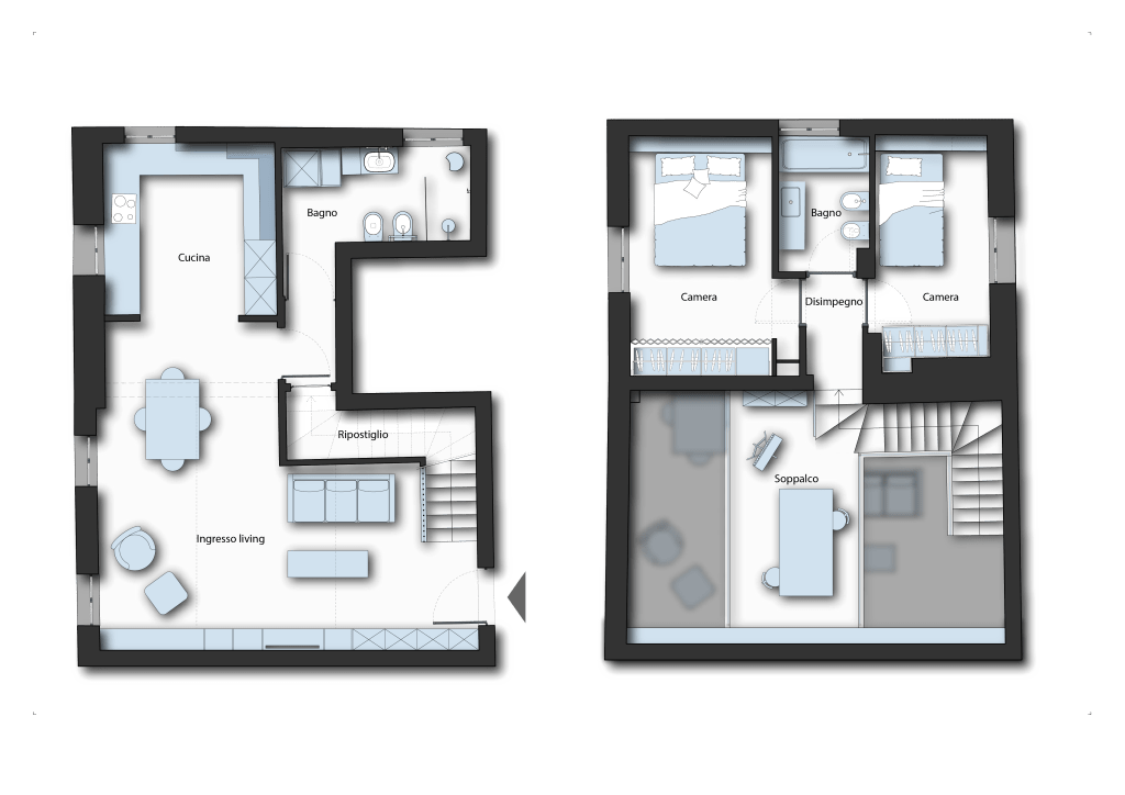 Il progetto riguarda la riqualificazione di un appartamento situato all’interno di una cascina storica rinnovata, distribuito su due livelli. L’intervento si è concentrato principalmente sulla definizione degli arredi e sull’organizzazione degli spazi, mantenendo intatta la struttura originaria e valorizzando i volumi esistenti.