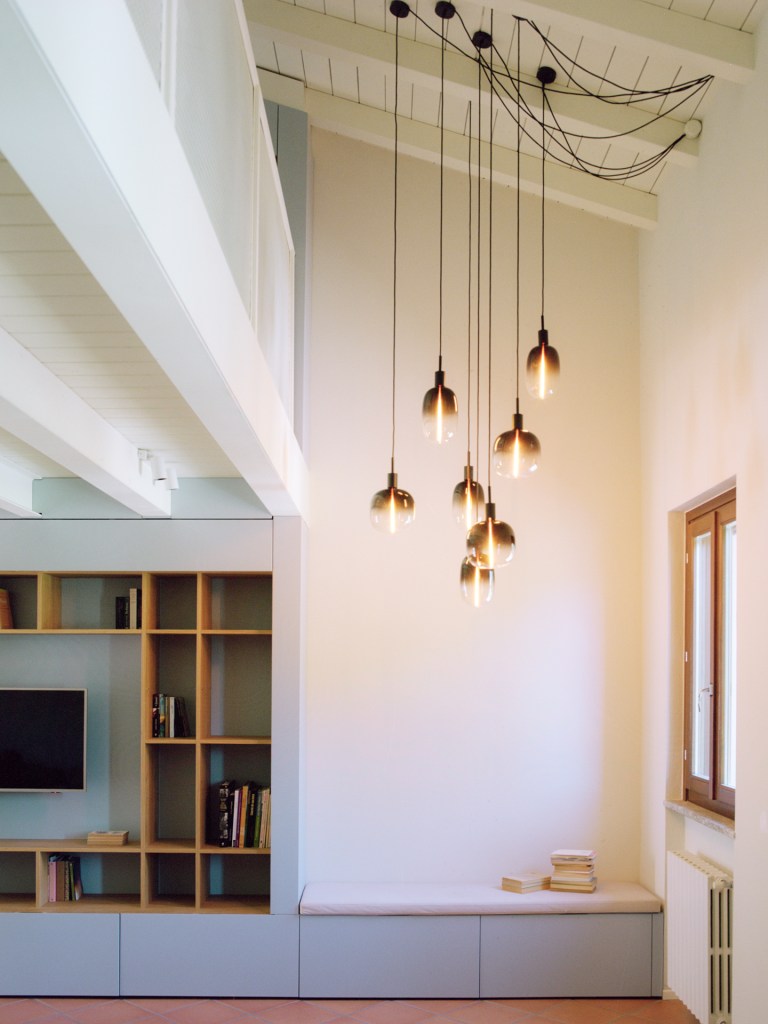 La progettazione illuminotecnica, sviluppata ad hoc, accompagna i volumi e definisce le diverse aree della casa attraverso un sistema di luci bespoke che dialoga con i materiali e le altezze.